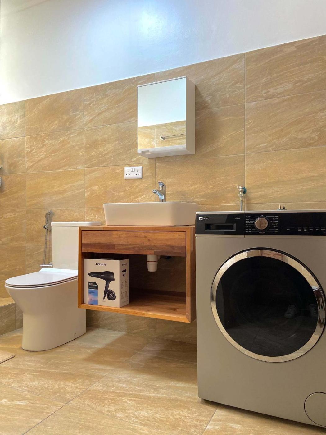 Apartment. The air-conditioned apartment has 1 bedroom, 1 bathroom and a kitchen. In the well-fitted kitchen, guests will find a stovetop, a refrigerator, kitchenware and an oven. The apartment features a washing machine, a wardrobe, a high chair for children and a TV. The unit has 1 bed.